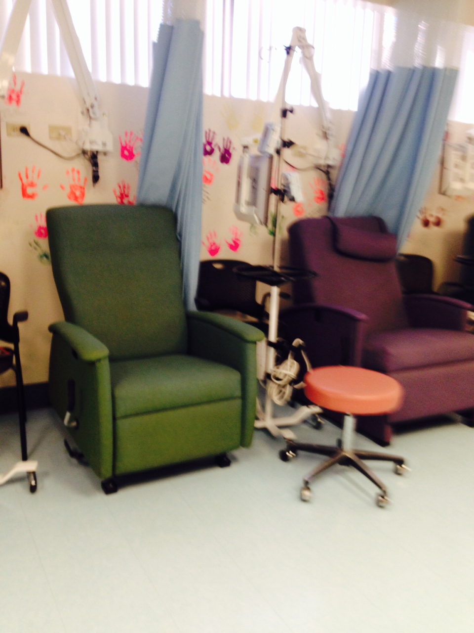 Wednesday: Blood work-checking for platelet and Red Blood Count. Pack my bag for the chemo room which includes a pack of Twizzlers and a downloaded movie (nothing dark and depressing Lis). Wednesday night, I am always a little nervous anticipating the next day’s events. I know what it’s going to be, but I still get nervous the night before.